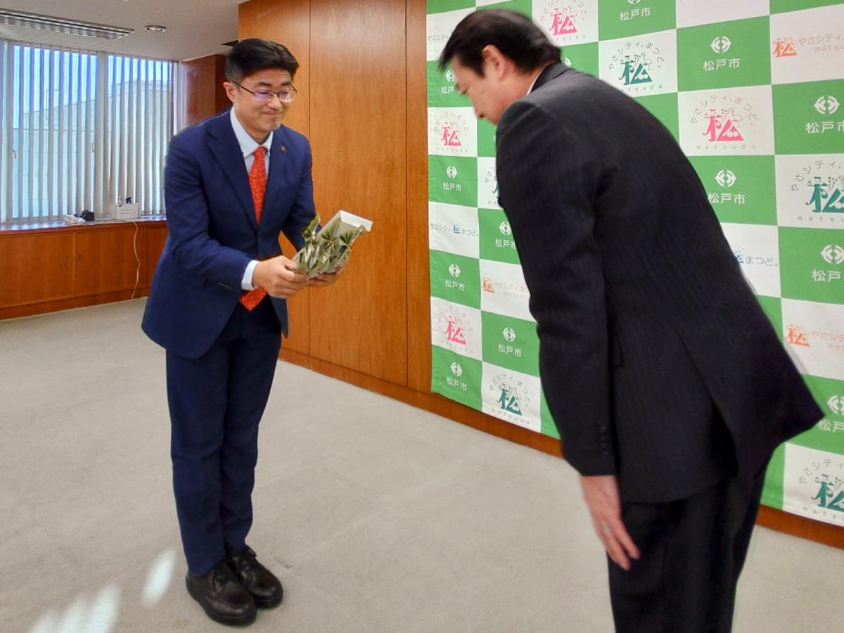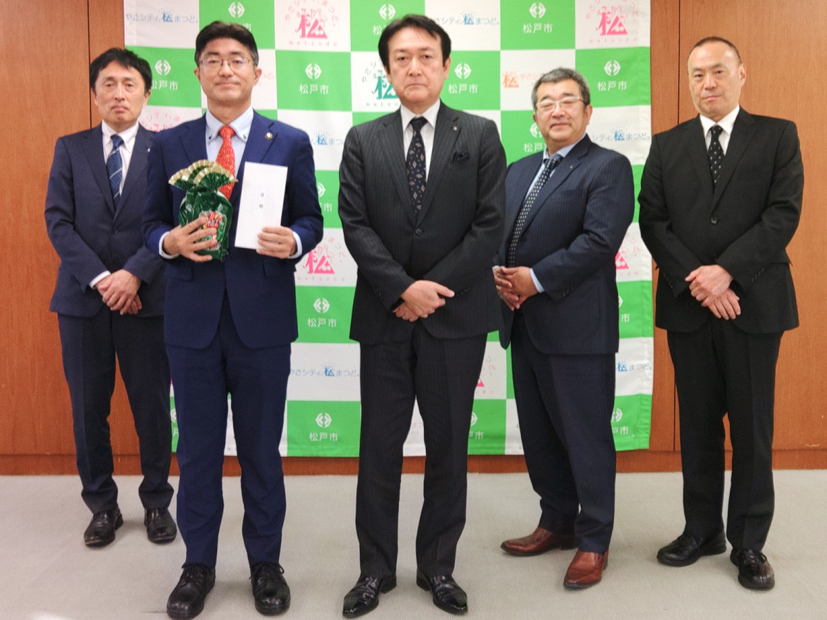 メリーチョコレートカムパニー(東京都大田区)が12月11日、松戸市内の児童館や子ども食堂などにチョコレート1000袋を寄付し、市役所で贈呈式が行われた。
