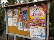 東松戸中央公園の掲示板に掲示された「ばけごろうとおいしいマルシェ」のポスター