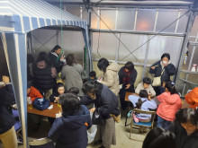 ばけごろうは「みんな~ボクは、松戸に恋をしたおばけ、ばけごろうなんだばけ~。松戸のみんなを笑顔にするためにがんばるから、ぜひ遊びにきてほしいんだばけ~」と来場を呼び掛ける。