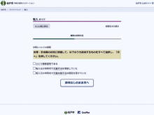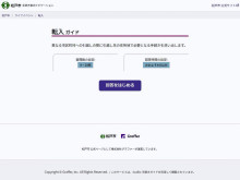 「手続き案内ナビゲーション」の各メニューの最初に、質問数と回答時間の目安について案内がある