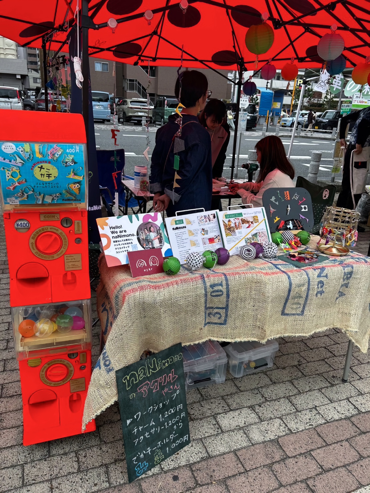 「南流山みなみな箱市」のマルシェに出店した、アクリル端材を使ったアクセサリーの店(前回の様子)