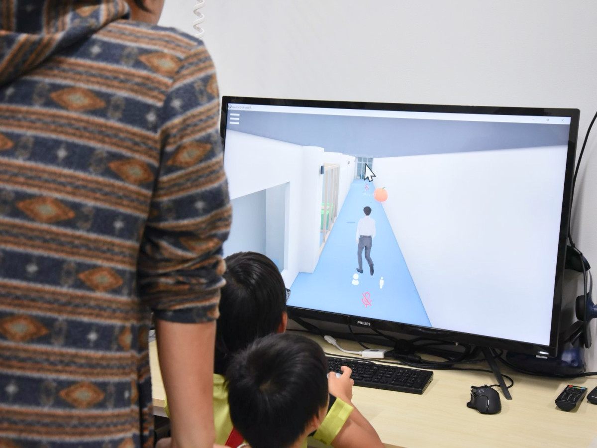 仮想空間内に再現された産総研柏センターを探検する「忍者屋敷『忍erse(しのばーす)』」(2024年一般公開の様子)