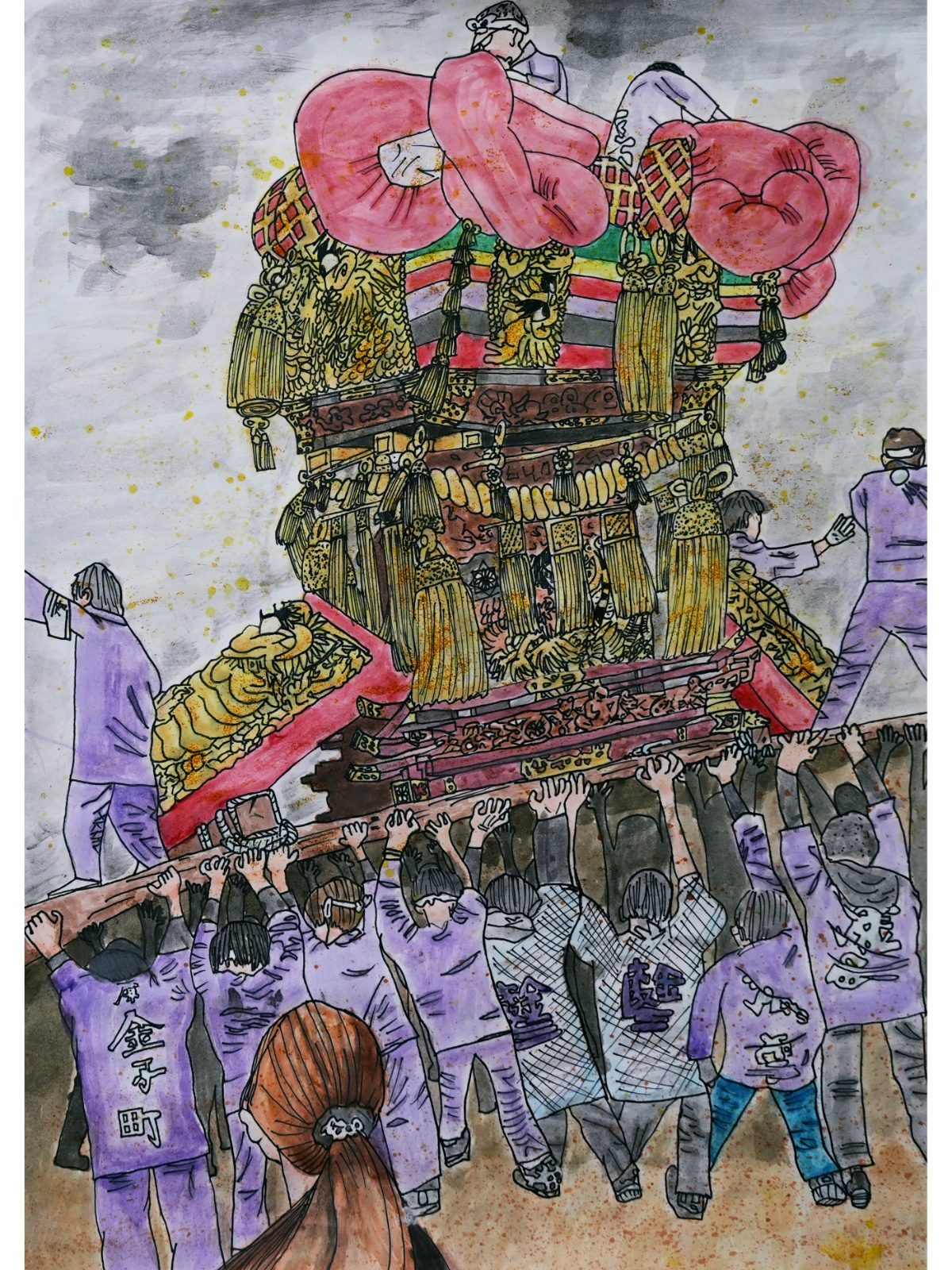 博物館アワードイラスト部門・教育長賞受賞作品「愛媛の太鼓祭」