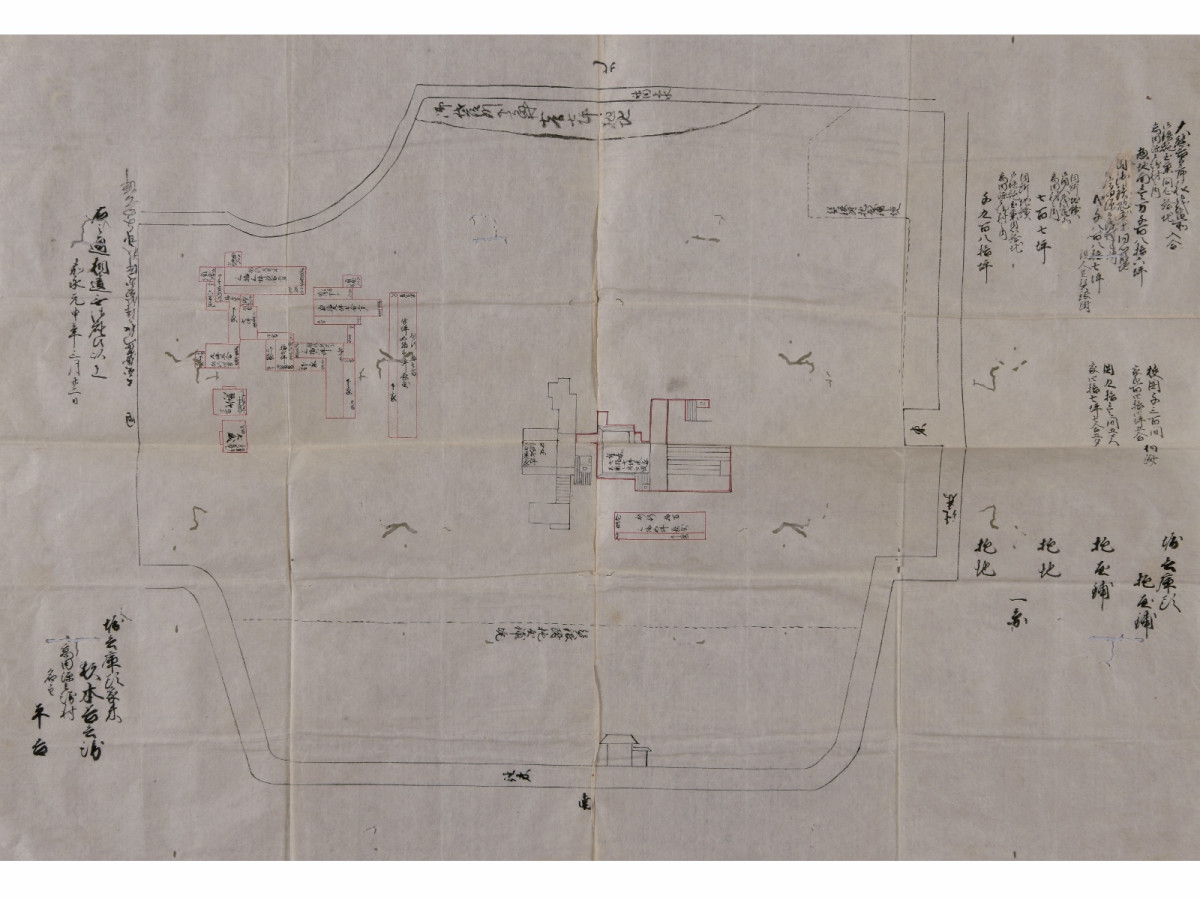 江戸時代の「名園」楽其楽園(らくぎらくえん)として知られた信州飯田藩堀家抱屋敷絵図(松戸市戸定歴史館提供)