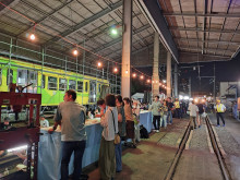 2024年9月に開かれた「流鉄BEER電車2024」の様子。車両基地内の立ち飲み席で飲食を楽しむ来場者